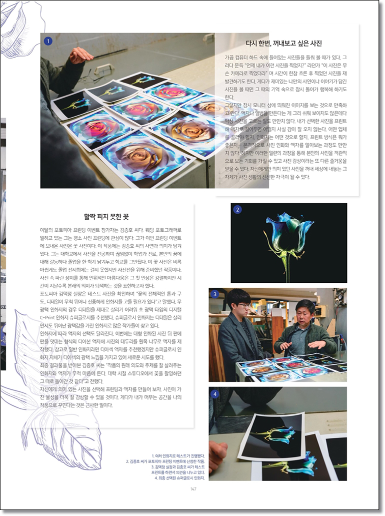 이번 프린팅 체험 사진은 김종호님의 대학 시절 학업과 진로의 사연이 담겨 있는 ‘꽃’ 사진입니다.